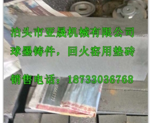 描述:名稱:回火窯用墊磚 規格:250mmX120mmX50mm 材質:QT400 要求:四面加工 用途:此球墨鑄件用于回火窯做墊磚用,溫度最高可達到1100攝氏度不溶。更多技術使用問題咨詢:18733036768...